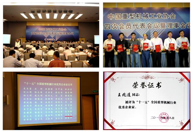2011年5月8日~9日,中國重型機械工業(yè)協(xié)會五屆四次會員代表會議暨理事會議在北京鐵道大廈召開。表彰“十一五”期間為我國重型機械行業(yè)發(fā)展和科技進(jìn)步做出突出貢獻(xiàn)的企業(yè)家是會議的主要內(nèi)容之一。中國第一重型機械集團(tuán)公司總經(jīng)理吳生富和我公司董事長兼總經(jīng)理王兆連等50名同志被評為“十一五”全國重型機械行業(yè)優(yōu)秀企業(yè)家并受到大會表彰。