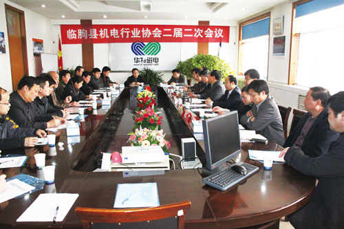 臨朐縣機(jī)電行業(yè)協(xié)會(huì)二屆二次會(huì)員大會(huì)于2014年1月15日在山東華特磁電科技股份有限公司會(huì)議室召開。大會(huì)應(yīng)到會(huì)員43人,實(shí)到35人,超過應(yīng)到會(huì)員人數(shù)三分之二。臨朐縣經(jīng)信局局長梅傳杰,副局長周德運(yùn),經(jīng)濟(jì)運(yùn)行總調(diào)度長李玉凱參加大會(huì)。大會(huì)采用無記名投票方式選舉臨朐縣機(jī)電行業(yè)協(xié)會(huì)會(huì)長,王兆連以全票同意當(dāng)選會(huì)長。采用無記名投票方式通過《臨朐縣機(jī)電行業(yè)協(xié)會(huì)章程》《孔凡泉任臨朐縣機(jī)電行業(yè)協(xié)會(huì)法定代表人決議》,全票同意《章程》和《決議》。