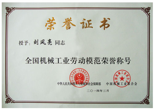 公司技術(shù)中心總經(jīng)理劉風(fēng)亮被授予“全國機(jī)械工業(yè)勞動模范