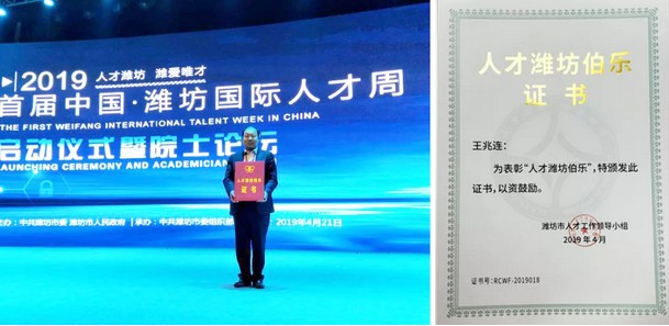 華特磁電董事長王兆連喜獲“人才濰坊伯樂”獎